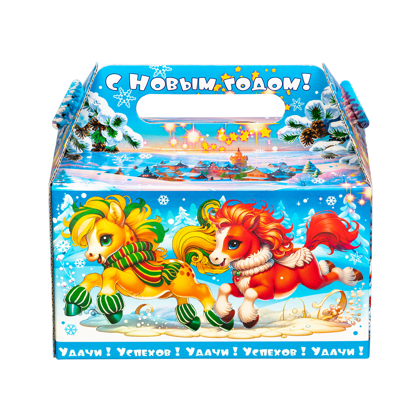 Интересный вариант новогоднего подарка – «Огоньки (Полезный состав)». Он представлен в разделе Картон. Отлично подойдет на подарок в 2026 году с символом Лошадь. Внутри такого презента находится кондитерский набор весом 1000 граммов.